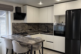 В доме хороший свежий ремонт, выполненный в светлых тонах.