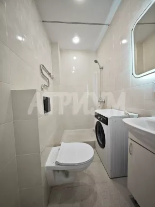 Характеристики. Квартира-студия площадью 27 кв м, расположена на самом удобном 3-ем этаже 5 этажного дома 2025 года постройки. В квартире свежий ремонт, никто не проживал: ламинат, обои, натяжные потолки, карниз с нишей и подсветкой, в санузле керамогранит, душевая, инсталяция, раковина и стиральная машина. Есть балкон.