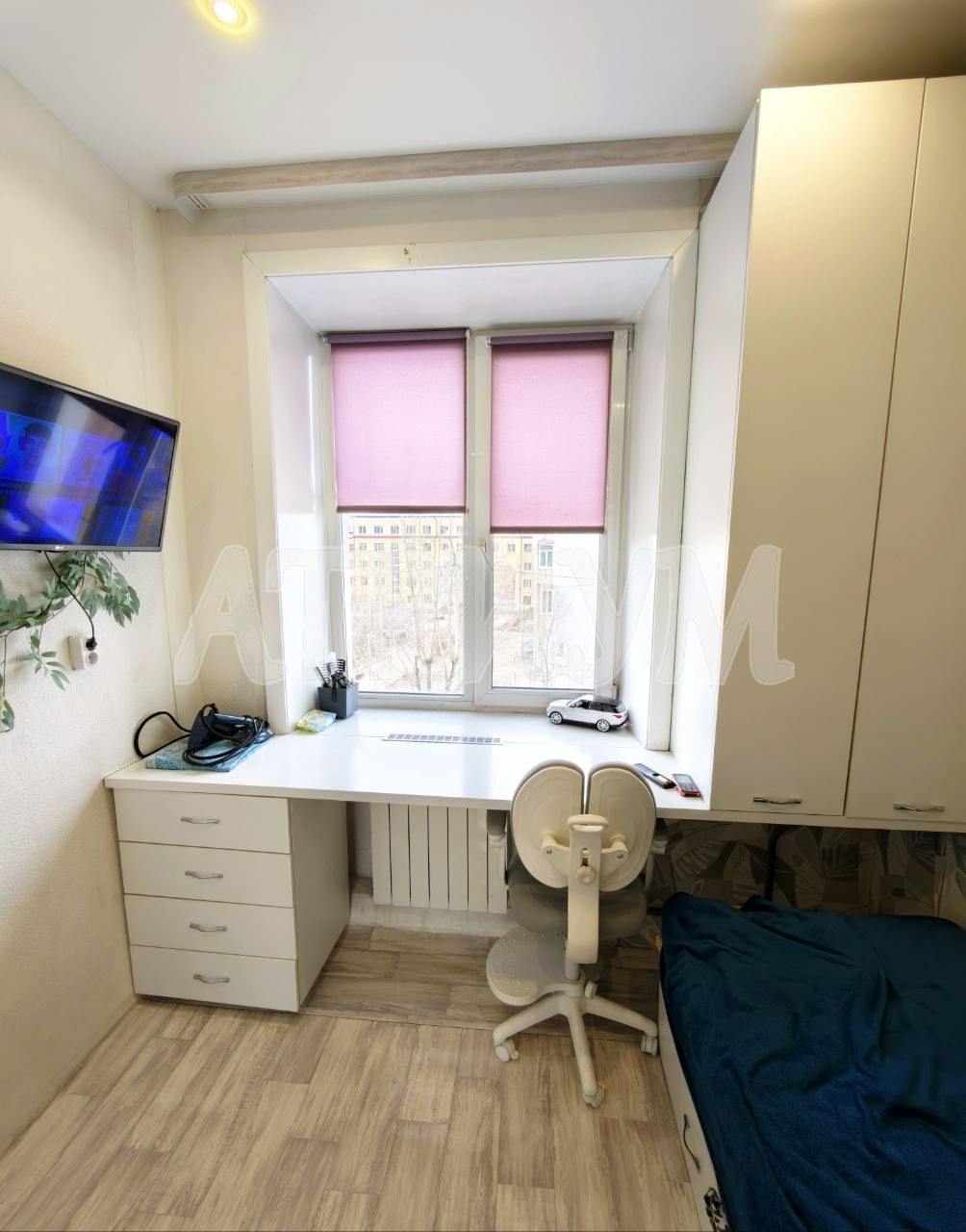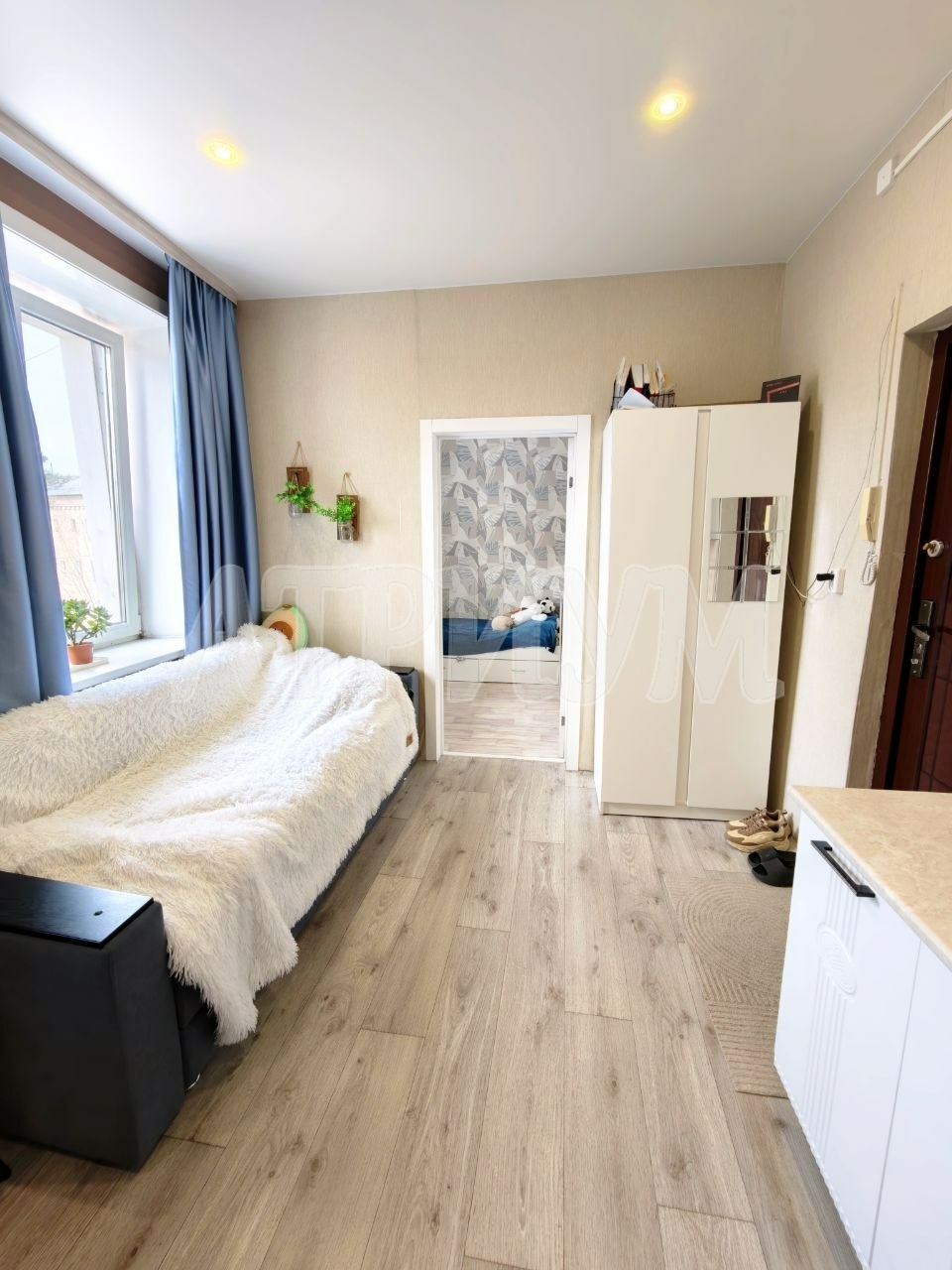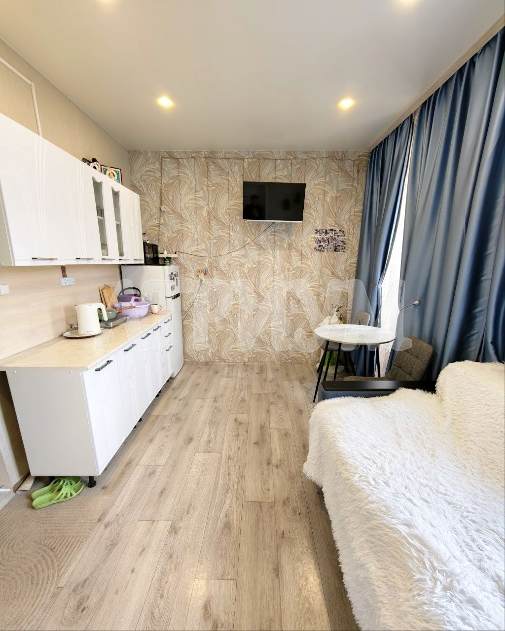 Характеристики. Квартира состоит из комнаты и кухни- студии, общая площадь 25,3 кв. м, расположена на самом удобном 3ем этаже. Дом кирпичный – очень теплый. В квартире хороший ремонт, высокие потолки, встроенные шкафы, детский стол для занятий со шкафами и полками, шкаф-купе, кухонный гарнитур.